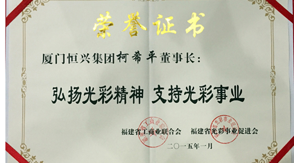 柯希平董事长发挥“致富思源、富而思进、扶危济困、乐善好施、义利兼顾、品行并重、生长企业、回馈社会”的色泽事业精神,,,,,起劲推行社会责任。。。在2013-2014年度,,,,,为福建省色泽事业增进会捐钱100万元,,,,,名列各捐资企业/小我私家第十位,,,,,并被授予“弘扬色泽精神、支持色泽事业”声誉证书。。。