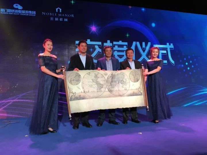 运动现场还举行了“船东之夜”的交接仪式,,,厦门九游电竞集团董事长柯希平将象征着探索、开拓、传承的航海卷轴交回主理方,,,主理方再将航海卷轴递交给2018五缘湾游艇港船东之夜相助同伴惠龙集团董事长林文龙。。。。航海卷轴的交接不但代表了联合主理形式的传承,,,也代表了厦门九游电竞集团·云顶庄园对船东之夜越办越好的愿望转达,,,更代表了厦门游艇工业乘着金砖相助第二个“金色十年”的机缘扬帆启航!