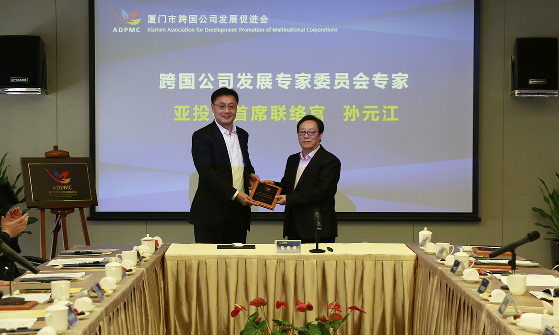 专家委员会召集人钟兴国博士为亚投行首席联络官、商务部国际司原副司长孙元江司长授予跨国公司生长专家委员会专家牌匾。。。。。