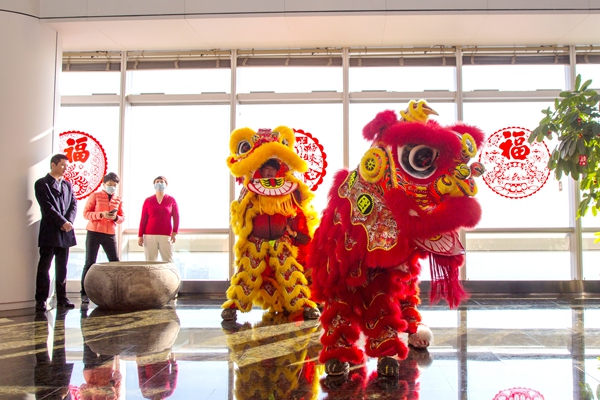 盛大精彩的舞狮演出运动,,,,,成为集团公司和财产中心大楼正月初九的开年必备,,,,,以此振奋精气神,,,,,醒年迎开市!2023瑞兽来贺,,,,,职场人踏步前行,,,,,斗争者继续追光!